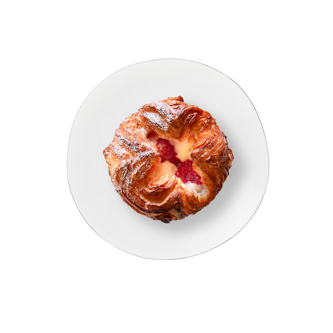 A traditional Kouign Amann filled with tangy cream cheese filling and raspberries. Contains wheat, eggs, dairy..
