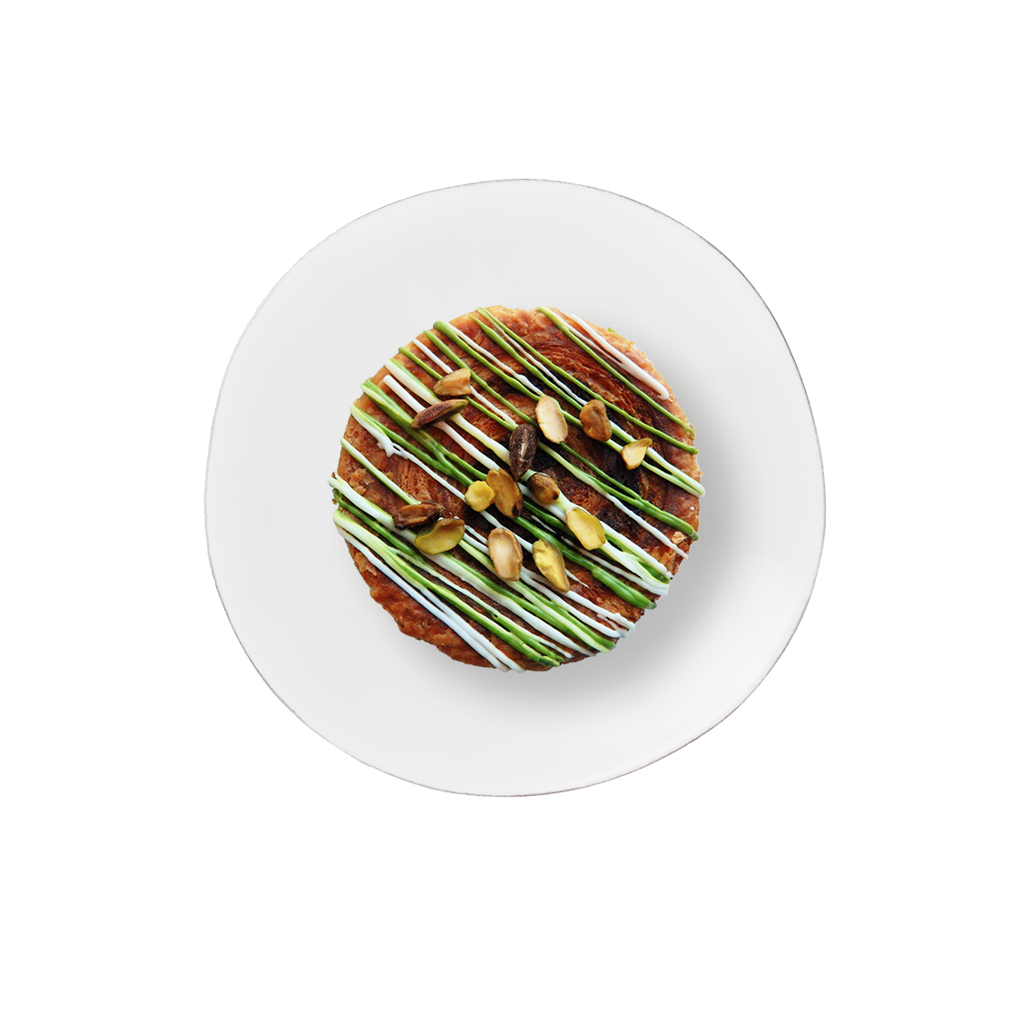 Decadent croissant dough rolled with pistachio almond paste and topped with real pistachio paste, white chocolate, and candied pistachios. Contains: Nuts, Wheat